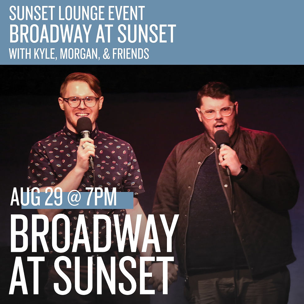 Join us for an unforgettable evening of show tunes and good vibes as Kyle LeMaire and Morgan Bartholick enter the spotlight in the Sunset Lounge for Broadway at Sunset! From beloved Broadway classics to hidden gems of the stage, this musical evening promises something for every theater lover.